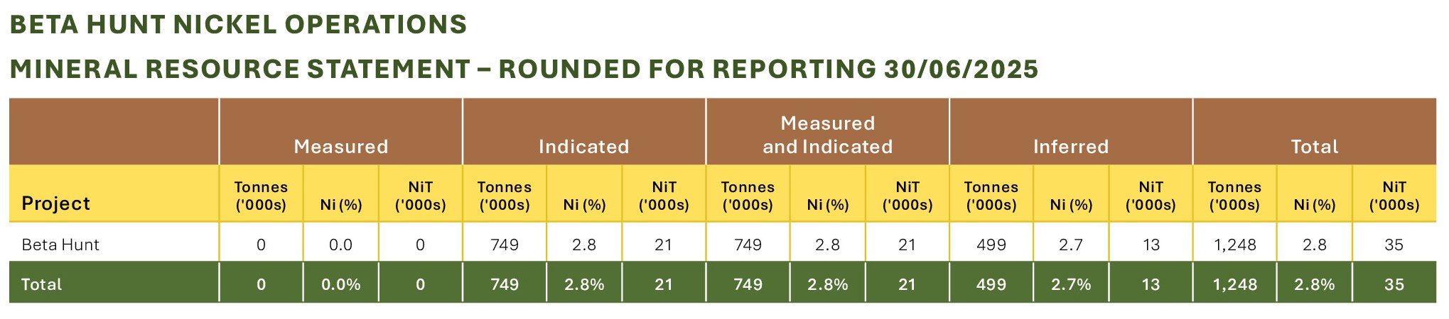Table 3 - Nickel Mineral Resource Estimates at 30 June 2025 for Beta Hunt